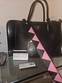 Prada....Saffiano Paradigme city handbag "Galleria" ICONICA della Maison ha aggiunto al nero intramontabile, disegni geometrici Pink.A mano od a spalla con la propria bandoliera nera e rosa regolabile.Certificati di autenticita'dust bug....completano questa Borsa...
