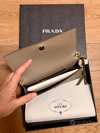 NUOVA mini borsa di Prada in pelle di Saffiano color argilla.