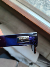Montatura Prada in plastica colore blu, montano lenti da vista al momento, custodia rigida di Bulgari, ottime condizioni.