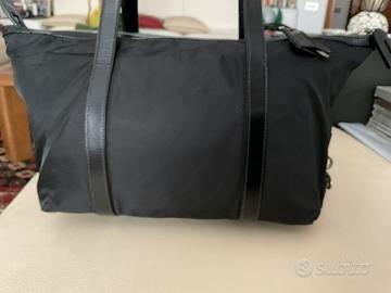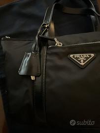 PRADA borsa a mano con finiture in pelle e un lucchetto con chiave, e una targhetta portanome modello spazioso molto attuale presenta iconico triangolo metallo smaltato fa parte della collezione storica di PRADA, in ECCELLENTE condizioni, senza segni di usura, perfetta in ogni particolare completa di certificato e dust bag