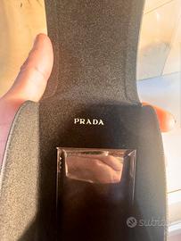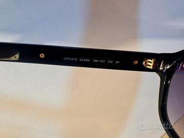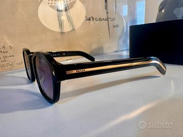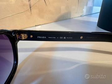 Vendo occhiali da sole originali Prada PR A16S, mai utilizzati, ricevuti come regalo ma non di mio gusto. Modello iconico Prada, con forma pantos e dettagli metallici distintivi sulle aste. •✔️ Montatura: nero lucido •✔️ Lenti: viola sfumate •✔️ Materiale: acetato di alta qualità •✔️ Made in Italy •✔️ Logo Prada su lente e aste •✔️ Inclusi libretti originali Luxottica