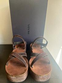 Prada Sandali con zeppa in pelle scamosciata marrone misura 39