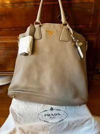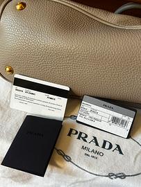 Prada stupenda shopping bag color tortora / ghiaccio mai usata con cartellini e card a garanzia ancora nell’incarto protezioni originali. Prezzo poco trattabile vero affare