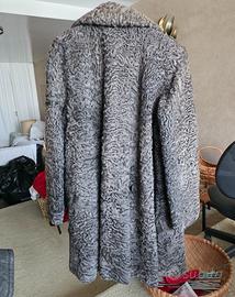 Elegante cappotto in vera pelliccia di Astrakan (Persiano) in una luminosa tonalità di grigio naturale. Capo di alta manifattura artigianale realizzato dal Laboratorio Pellicceria Soulieri.