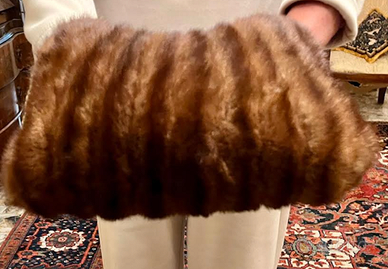 ARTICOLO RARO: pregiato MANICOTTO in vera PELLICCIA di VISONE completamente foderato in raso di seta con tasca interna richiudibile tramite zip. Il manicotto in pelliccia di visone era un accessorio di moda popolare tra la fine del XIX secolo e la metà del XX secolo, particolarmente diffuso negli anni '40 e '50. Questi accessori erano considerati simboli di eleganza e rafinatezza, utilizzati dalle donne per tenere le mani al caldo durante i mesi invernali. CONDIZIONI: ottimo stato conservativo, adoperato in pochissime occasioni.