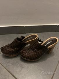 Vendo come da foto Zoccolo con tacco San Crispino molto molto prestigioso artigianale vera PELLE prezzo affare indossato solo una volta per sfilata campionario n38