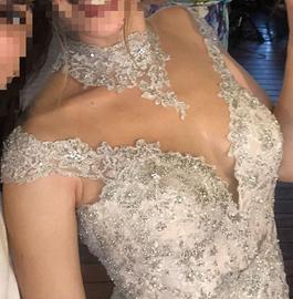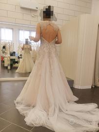 Bellissimo e prezioso abito haute couture da sposa Pronovias in tulle, declinato in una delicata nuance beige, praticamente nuovo indossato solo per due ore poiché è stato fatto il cambio d'abito.