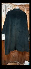 Finissimo e di altissima qualità questo cappotto vintage degli anni ottanta,nuovo, lavorazione artigianale in alpaca, mohair e lana, bordo delle maniche impreziosito con vera pelliccia, modello raro stile mantello, chiusura a spinta con pushoare in metallo, tasche frontali,disponibile anche il colleto realizzato sempre in pelliccia naturale uguale con quella delle maniche, vendibile apparte. Vestibilità da una taglia 48 fino ad una taglia 54-56, misure-spalle 42 cm,ascelle 69 cm,lunghezza 101 cm.