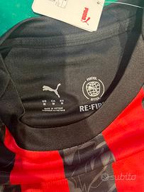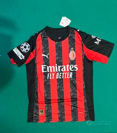 Prima maglia AC Milan, personalizzata MODRIĆ 14 sul retro. Design moderno con bande rossonere nella parte bassa. Presenta patch applicate sia davanti che sulle maniche, incluso il logo Champions League. Tessuto tecnico leggero e traspirante, ideale per partita, collezione o tempo libero.