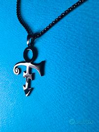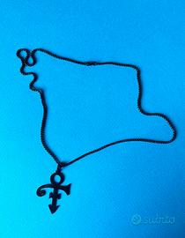 "Prince-Symbol" Collana e Pendente in metallo cromato nero, con chiusura di sicurezza, mai indossata (acquistata solo per puro collezionismo) - Il Simbolo famosissimo e iconico dell'assoluto genio di Minneapolis, Prince Roger Nelson - Misura della catenella: 60 cm. - Pendaglio 3,7 x 5 cm. Prince Roger Nelson Funk Funky Purple Rain Paisley Park Sign Of The Times Parade Take me with you Little Red Corvette Controversy 1999 Around The World in a Day Raspberry Beret Batman Graffiti Bridge Jamie Starr Graffiti Bridge Cherry Moon