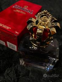 - Packaging con dettagli dorati e rossi.