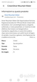 Vendo questo buonissimo profumo Creed Silver Mountain Water, le caratteristiche sono indicate in una delle foto pubblicate