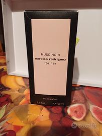 Profumo "MUSIC NOIR" NARCISO RODRIGUEZ da donnaNUOVO mi è stato regalato ma non mi piace. Confezione originale 100 ml Caratteristiche:ambrata floreale e muschiata con note di prugna, eliotropio, muschio, rosa, cedro bianco e un accordo di pelle scamosciata. La fragranza è descritta come un omaggio alla bellezza interiore della donna, avvolgendo chi la indossa in un'aura di mistero e sensualità attraverso un contrasto tra note luminose e sfaccettature più scure e intense del muschio.