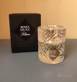 profumo Roses on ICE by kilian 50 ml ricaricabile eau de parfum.Famiglia olfattiva: fiorita, legnosa .Note di testa :cetriolo Note di cuore:ginepro,rosa Note di fondo: legno di sandalo,muschio Per:lui, lei,persistenza,alta ,scia alta.Nuovo mai usato originale.prezzo di listino euro 295,00