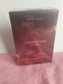 Temptation Mystic, un profumo intenso e seducente, con delizione note di succose ciliegie, il carattere deciso e coinvolgente dell’aroma di caffè, su un fondo caldo e unico di “Amberwood”.