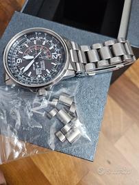 Citizen Promaster/Nighthawk BJ7000-52E – calibro B877, Eco-Drive, WR200, ghiera slide rule. Completo di scatola, maglie, manuali. Bracciale quasi perfetto. Sul vetro piccola scheggiatura a ore 11 + micro-graffietti impercettibili (visibili solo controluce).