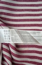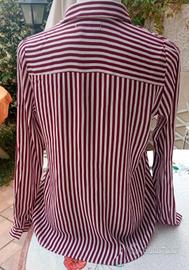 Motivo a righe bianche e bordeaux, colletto classico e maniche lunghe.