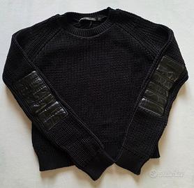 Pull modello cropped Zara Knit in cotone 100% a costa inglese colore nero, con applicazioni in ecopelle sui gomiti. Nuovo, mai indossato.