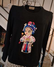 Maglioncino ricamato Compania Fantastica, nero ricamo bellissimo con finissimi colori.