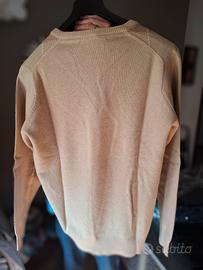 stupendo pullover in cachemire a tre fili, prodotto in Scozia, beige a rombi con intarsi bianchi. capo da intenditori e appassionati del genere. misure visibili sulla etichetta. orientativamente TG. 48.Qualita e spessore non paragonabile alla produzione attuale a due fili.