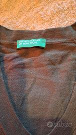 Pullover Benetton scollo a V verde oliva, taglia M. unisex . ideale mezza stagione