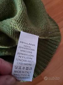Pullover cashmere e lana merino taglia M di un bellissimo colore verde erba.
