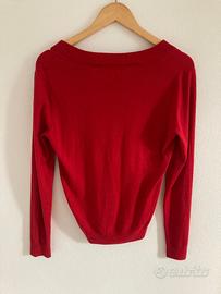 Maglia a maniche lunghe, collo a V. 30% poliammide, 25% poliestere, 25% viscosa, 20% lana. Prezzo pieno 25,99. Nuovo 100%