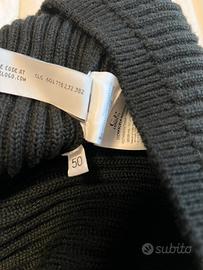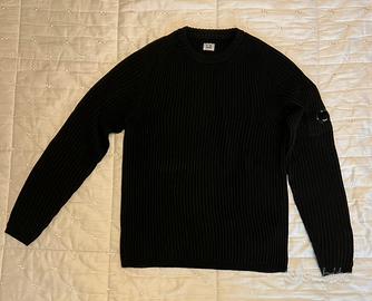 Maglione girocollo della CP COMPANY realizzato in lana con lavorazione a coste inglesi, colore nero, taglia 50, usato pochissime volte .Il capo presenta l’iconica Lente di C.P.