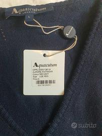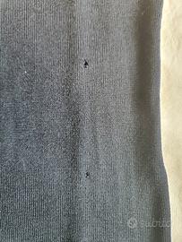 È nuovo con cartellino, ma purtroppo presenta 2 piccoli buchini (facilmente rammendabili da una magliaia) nella parte sinistra anteriore, dovuti al fatto che è rimasto impigliato nella chiusura della valigia. I dettagli sono mostrati nelle foto.