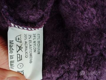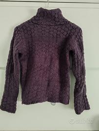 Maglione prodotto in Italia in ottime condizioni senza difetti. ha una bellissima lavorazione a rilievo e un tessuto pregiato che lo rende caldissimo e soffice. • Materiali di qualità: Contiene Mohair, una fibra naturale nobile che garantisce calore senza appesantire. • Design pratico: Chiusura con zip intera (comoda per la scuola o il tempo libero) e collo alto per proteggere dal freddo. • Colore: Un viola intenso, molto elegante e facile da abbinare. Misure precise: • Larghezza (ascella-ascella): 34 cm (essendo elasticizzato veste bene senza stringere) . Lunghezza 52 centimetri
