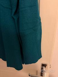 Indossato poco, colore ottanio / verde scuro, taglia curvy, scollo a v bordato come manica e fondo, qualche pelucchetto