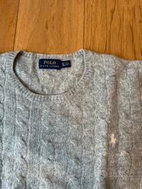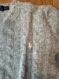 Vendo pullover girocollo intrecciato da donna Polo Ralph Lauren. Colore:grigio chiaro con cavallino bianco. Taglia XL. Materiali: Lana Merino (90%) e Cashmere (10%). In ottime condizioni.