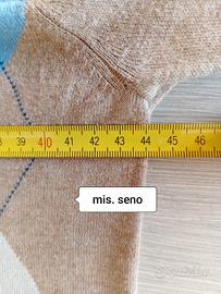 Bellissimo Pullover Massimo Dutti a quadri bianchi e celesti su fondo beige sabbia....scollatura tonda e maniche profilate sia davanti che dietro...taglia M con dettaglio misure in foto...perfetto!!!
