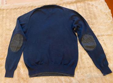 Indossato poche volte, 15 per cento cashmere, doppio bordo nel collo e in fondo con il grigio come le toppe