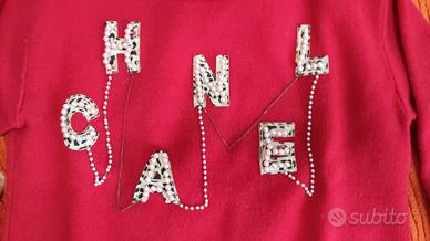 Maglione vintage ricondizionato con perline e scritta animalier Chanel. La composizione è per il 18% in lana e stirandolo la lana è stata bistrattata e leggermente infeltrita. Accetto offerte di prezzo, ragionevoli. Alcune parti sono state ricondizionate, ad esempio quella delle parline che si erano rotte e per questo sono state fatte delle riparazioni. Nonostante tutto resta un bellissimo maglione, ideale come maglione di Natale per via del colore rosso intenso, ma risulta bello anche per la particolarità delle perline e del tocco animalier, che non tramonta mai. *** Separatamente o dietro richiesta in una unica vetrina e con sconto, maglione vintage colore bianco Coco Chanel 5 panna che presenta normali segni di usura del tempo, come fotografie. la taglia è una S/M e di spalle misura 38 cm. Anche qui le applicazioni sono state ricucite perché in parte con l'usura il filo aveva ceduto.
