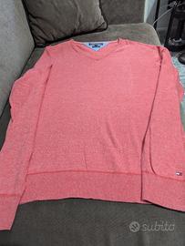 Pullover Tommy Hilfiger, in cotone, colore corallo, scollatura a V. Taglia L .