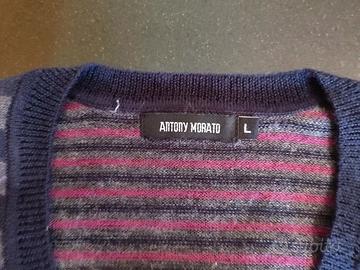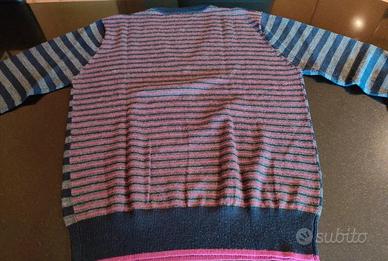 Pullover uomo blu e grigio con inserti color rosa sulla schiena