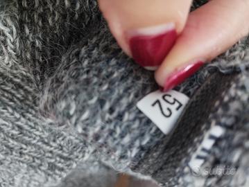 Pullover uomo Lifeline girocollo taglia 52 uomo che corrisponde ad una L, colore grigio melange, maglia spessa molto caldo, 50% alpaca, c'è un buchino come evidenziato in foto vicino la cucitura in corrispondenza della fascia inferiore, può essere lasciato anche così non si vede proprio. Ci può essere qualche nippolino facilmente removibile con un levapelucchi