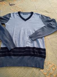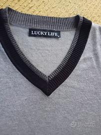 pullover uomo Lucky Life colore grigio chiaro grigio scuro e nero 50% lana collo a v taglia M misure spalle quaranta lunghezza 65 manica 62 cm nuovo senza cartellino