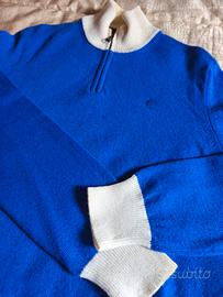 Nuovo Pullover con mezza zip Marina Yachting, 100% pura lana vergine, colore blu violaceo con polsini e colletto a contrasto, Tg. XXL ma vestibilità come una xl.