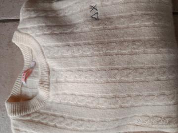 Maglione Sun68 bianco 100% lana morbida,taglia S.