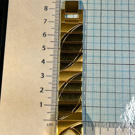 •Bracciale: Rigido placcato oro con motivi obliqui intrecciati, chiusura deployant, lunghezza ca. 15-18cm (regolabile)
