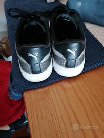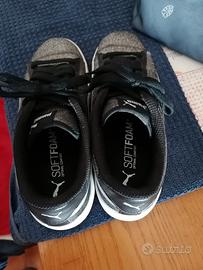 Scarpe Puma argentate, con lacci e finiture nere. In ottime condizioni.