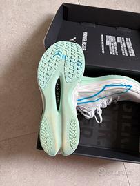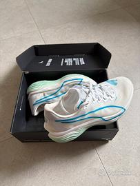 Vendo Puma Deviate Nitro Elite 3 bianche azzurre e verdi numero 43, usate 4 volte solo per allenamenti al chiuso.