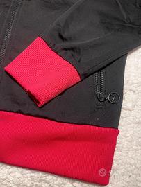 Nero con inserti Pink fluo (rosa acceso tendente al rosso) e dettaglio diagonale bianco. Logo ricamato sul petto.