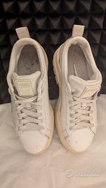 Vendo bellissime Puma Mayze Leather da donna, modello platform con suola alta a carrarmato, colore bianco con dettagli oro.