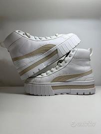 👟 Sneakers Puma Mayze Mid in colore bianco con dettagli beige, iconico modello chunky dal design moderno e grintoso, MAI USATE