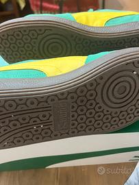 Vendo splendide Puma Palermo nell'iconica colorazione Jade Frost con dettagli Fresh Pear. Un classico dello stile "Terrace" con tomaia in pregiato suede e suola in gomma color caramello (gum sole).