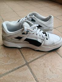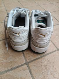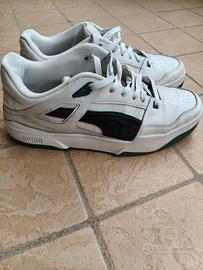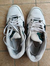 Puma Slipstream Modello iconico anni ’90 Codice: 388634-03 Taglia: 43 EU – UK 9 – US 10 – CM 28 Scarpe da ginnastica in pelle bianca con inserti verde scuro e nero, logo Puma dorato sul tallone e sulla linguetta. Design classico basket/sneaker con tomaia perforata, fascia in velcro sopra i lacci e suola verde gomma. Condizione: Usate ma in buono stato generale. Pelle con pieghe naturali d’uso (normale per un modello di questo tipo), suola con qualche segno di camminata, interno pulito. Nessun buco o strappo, zip e velcro funzionano perfettamente. Pronte da indossare o da collezionare. Foto reali di tutti i dettagli (fronte, retro, suola, etichette e interno). Perfette per look streetwear, casual o per chi cerca un pezzo vintage Puma originale. Spedisco in giornata ben protette con imballaggio rigido 📦 Prezzo trattabile!