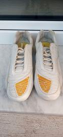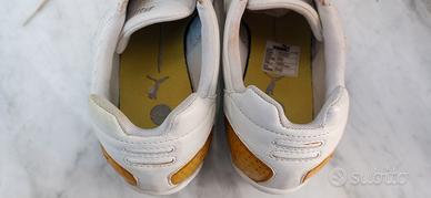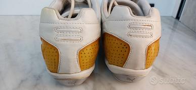 Scarpe da ginnastica PUMA da uomo Testastretta II Ducati in pelle bianca made in Vietnam, ideali per sport motoristici. Marchiate Ducati e Puma, queste scarpe offrono stile e performance, proprio come i due brand che le caratterizzano. Protezione per la leva del cambio, tallone rigido e tacco con inserto in alluminio. Usate pochissimo e ben tenute, con piccoli segni di usura e con alcune piccole crepe sulla plastica del tallone. Taglia europea 43, ma consigliate per una taglia 42. Ricarica su Postepay e spedizione a 10 €. No perditempo. Grazie